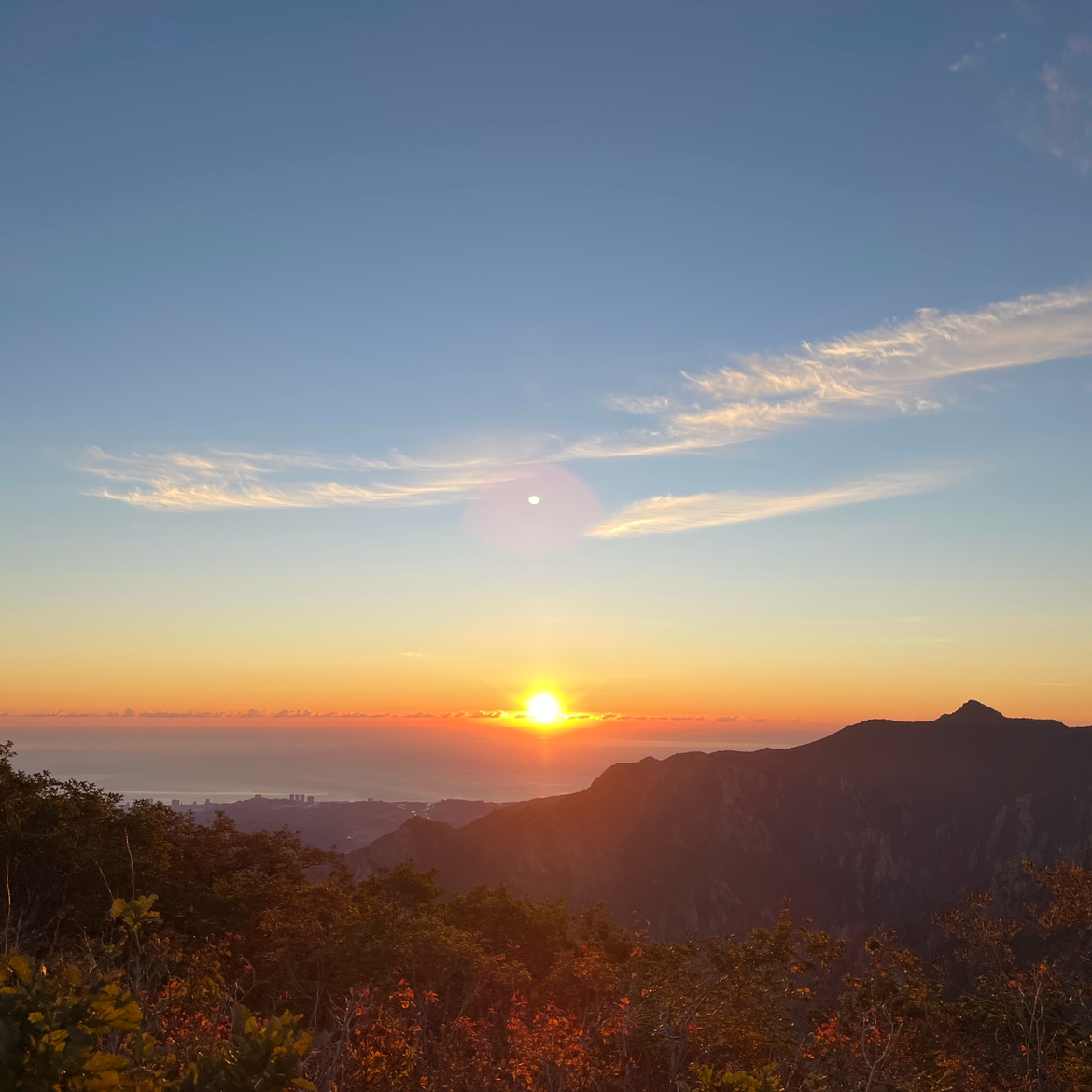 일출 앞에서 어떤 보상을 바라듯 겸허하게 서있는 모습이 밤새워 적군과 싸워 이긴 장병의 지친 허탈함 같기도 하고요. 이제 다시 힘내어 공룡능선을 넘어야 할 미션을 향해 달려갑니다.