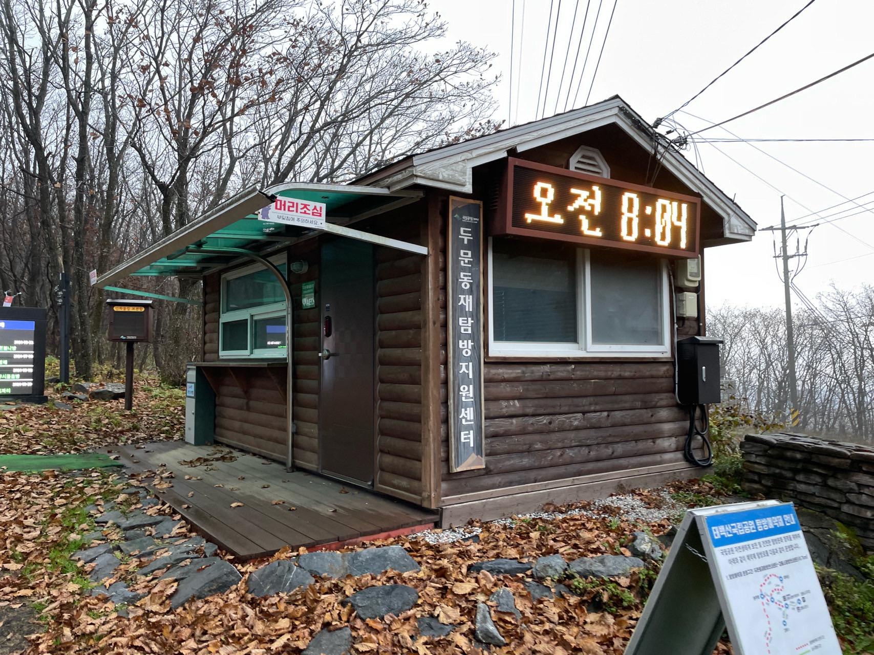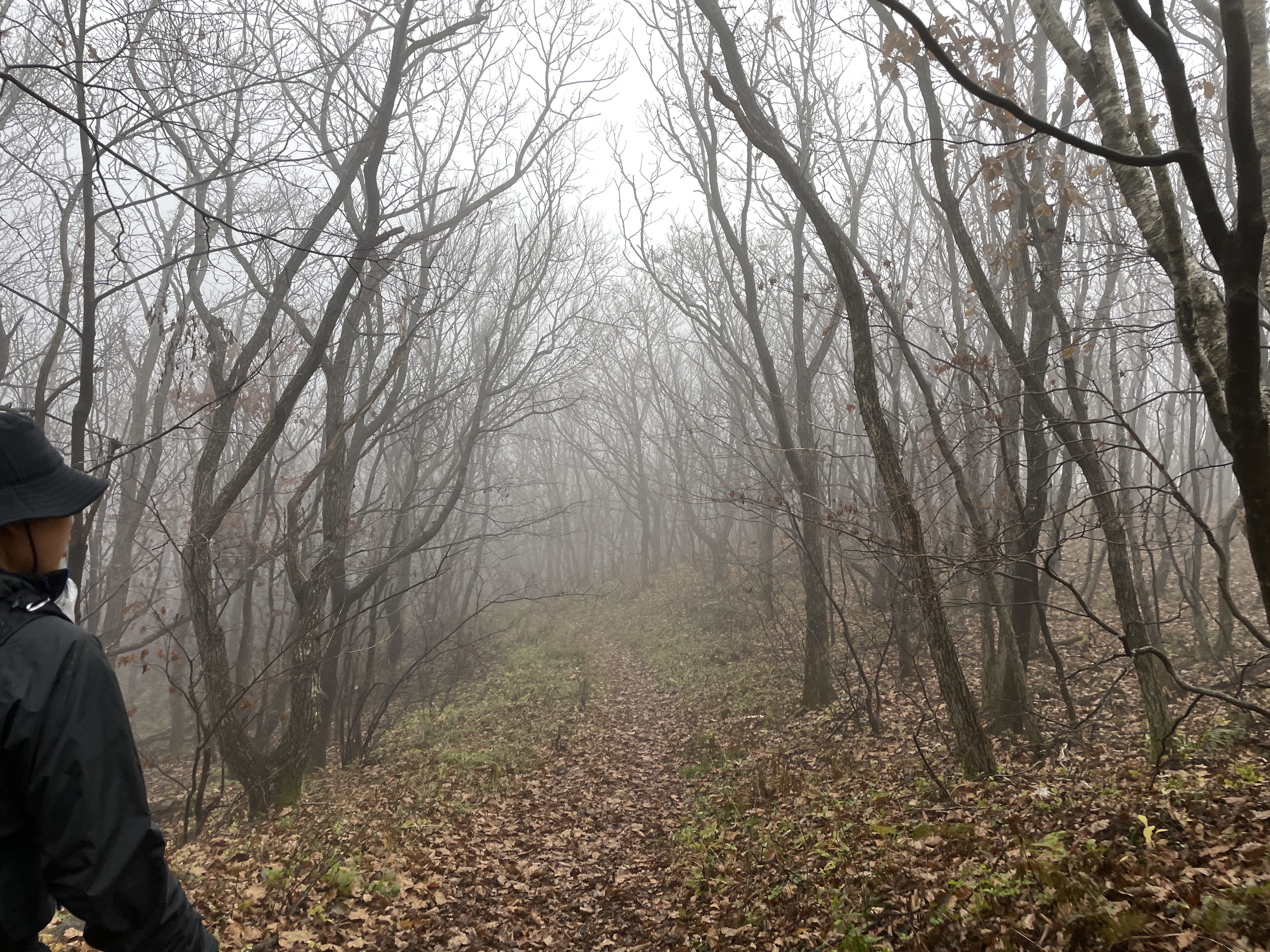 산행을 마무리하며, 가을비가 오는 날 산행은 안개로 인해 조망은 볼 수 없지만 가을 속에 푹 빠져 아름다운 숲길을 낙엽 냄새를 맡으며 마음껏 걸을 수 있어서 좋았습니다.
