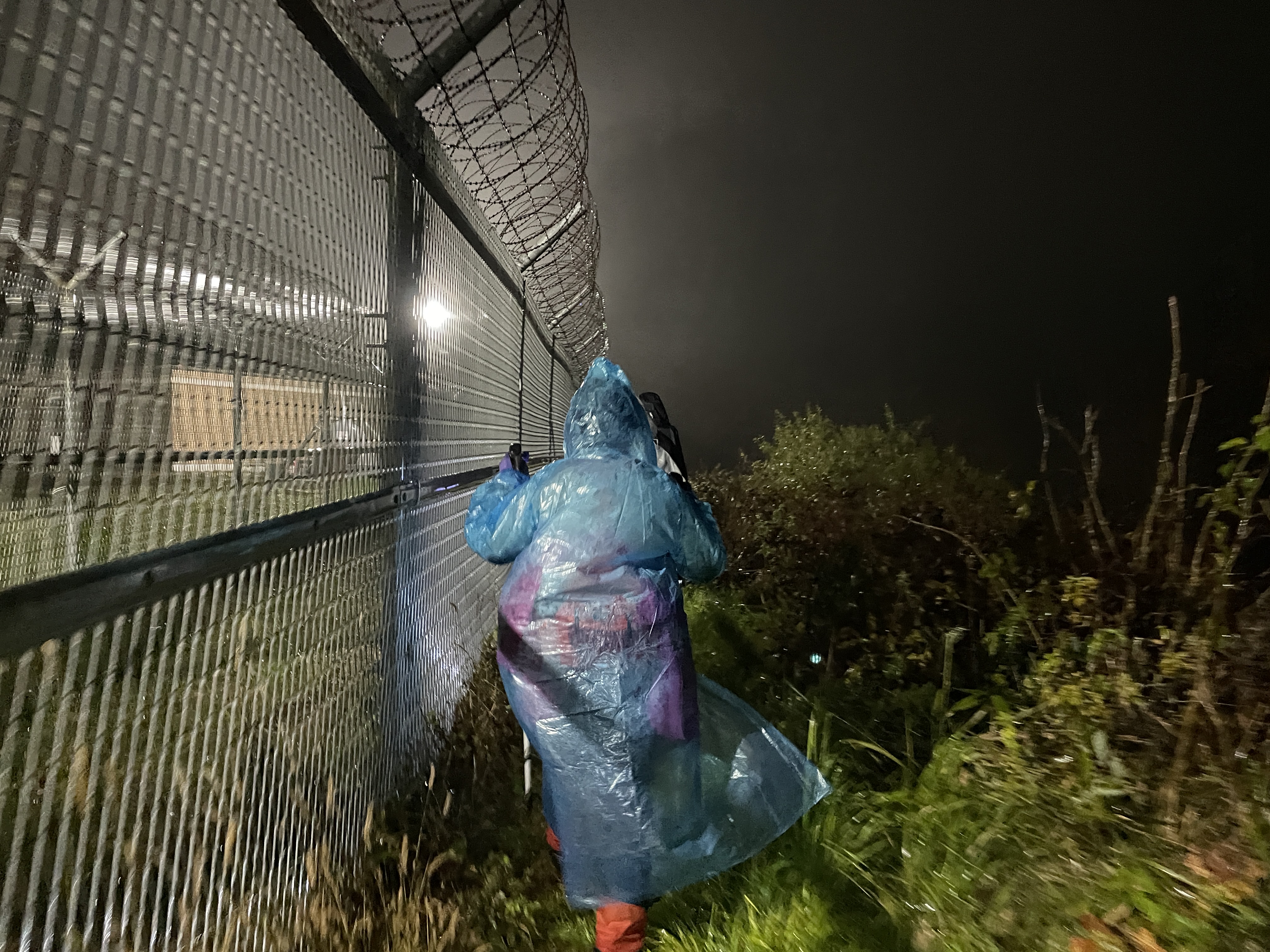 등산양말로 비닐을 고정시킨 후 비닐로 등산화를 덮어줍니다.