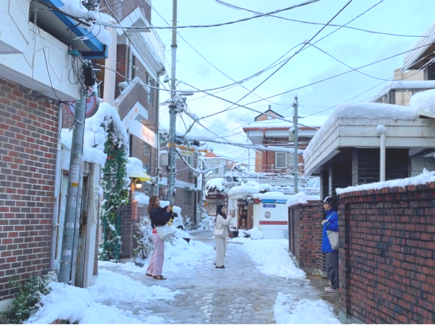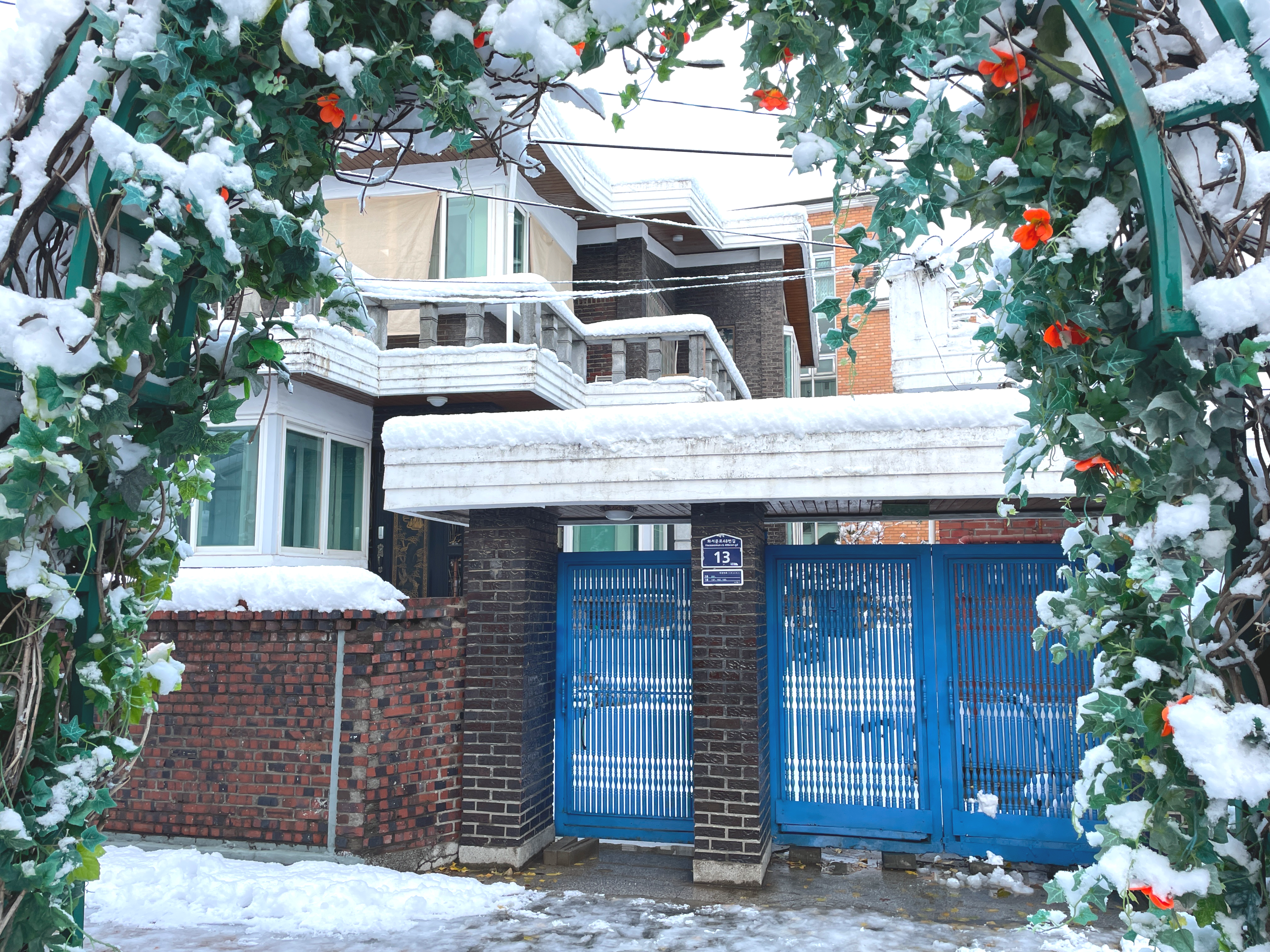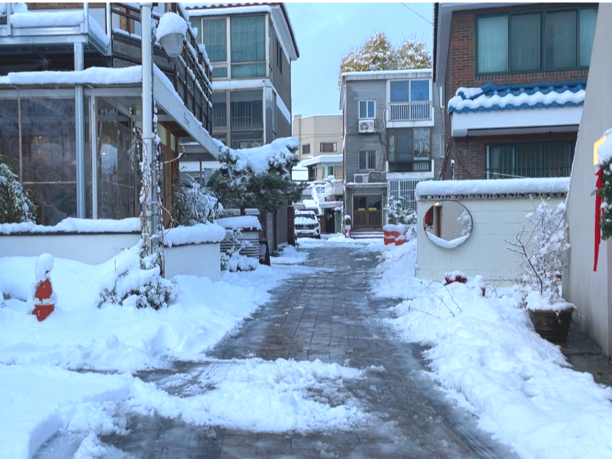 첫눈 내리는 날 친구와 행궁동에서 만나서