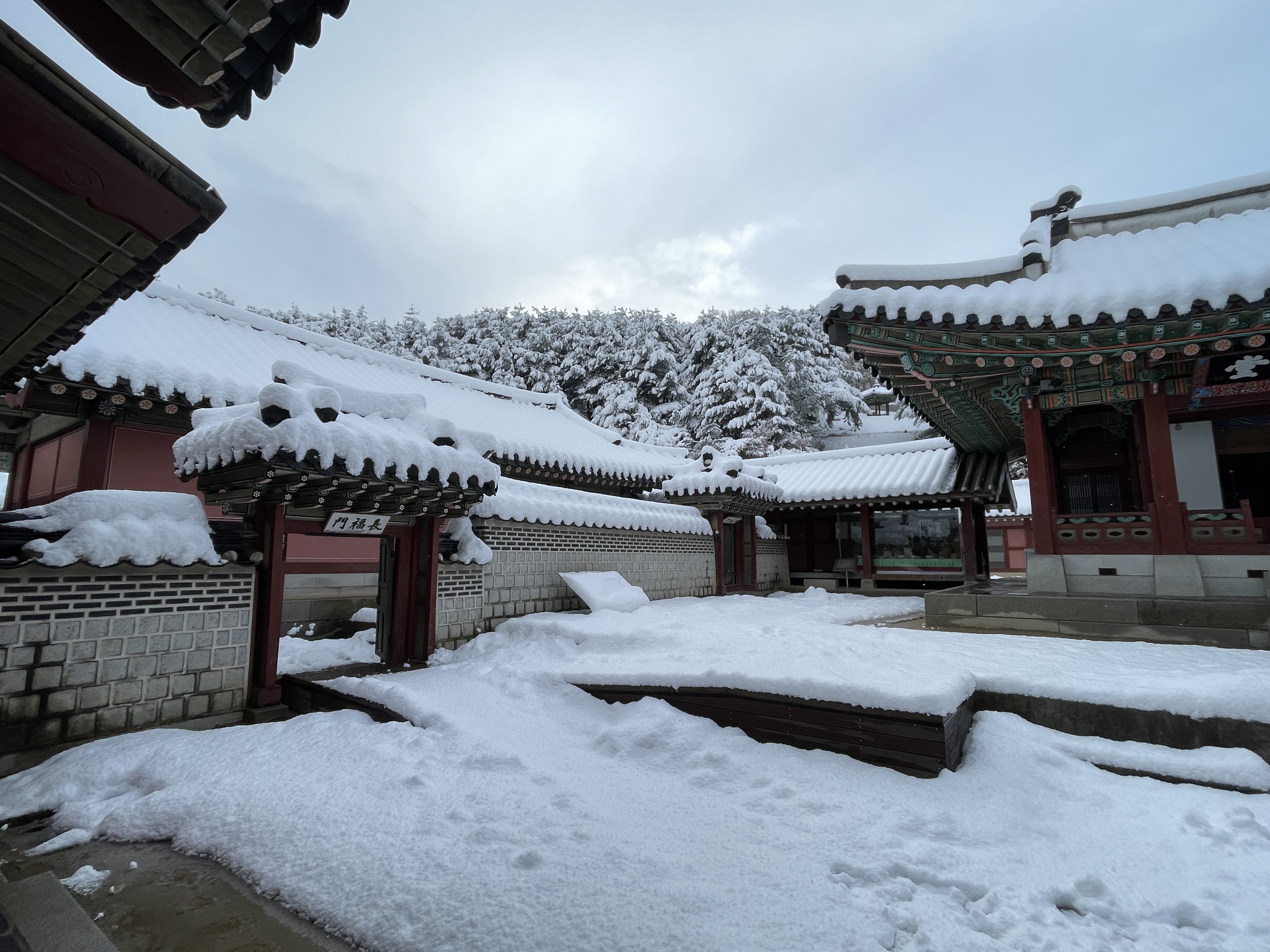 눈 내린 화성행궁은 정말 아름다운 곳이었습니다.
