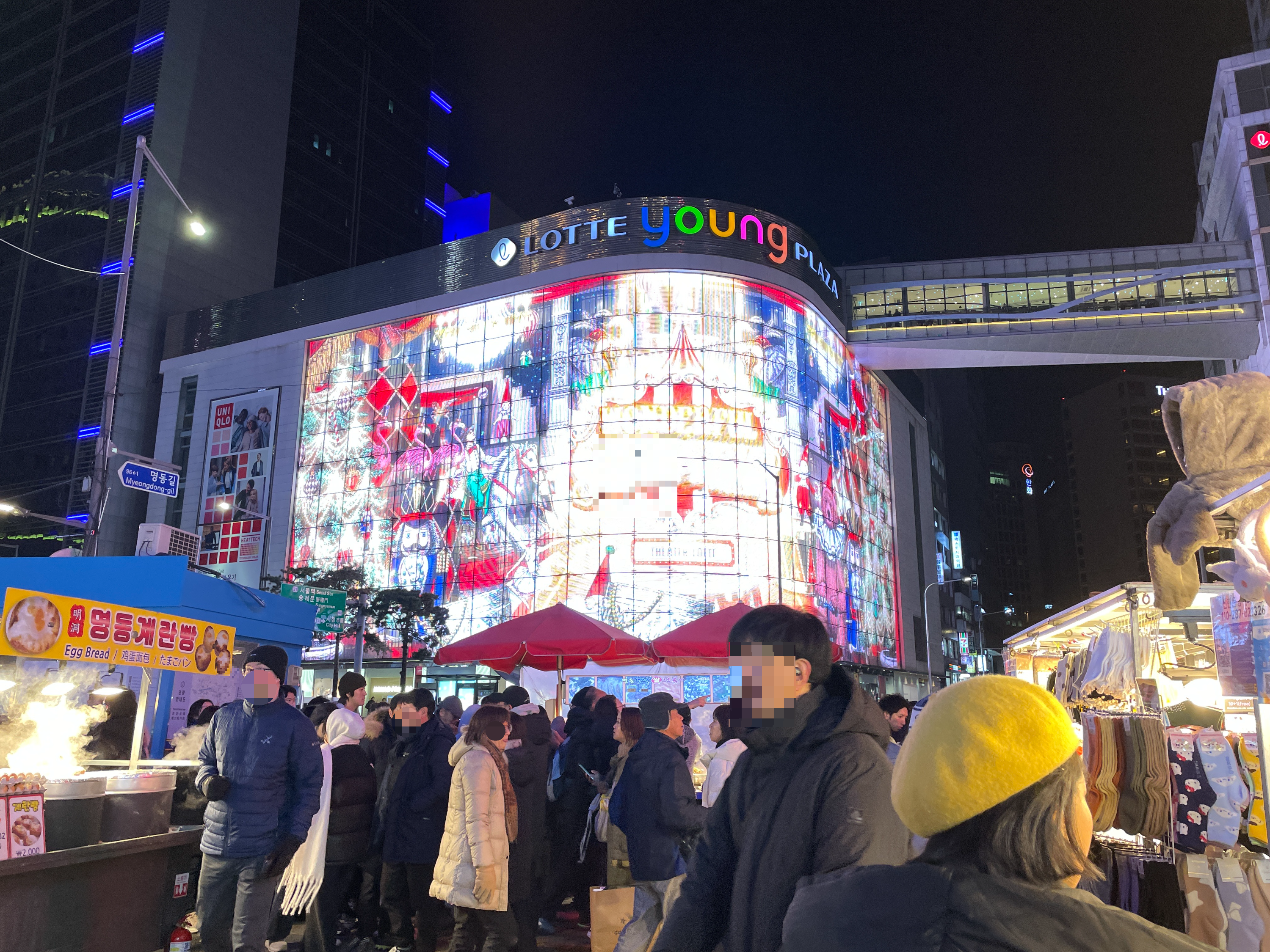 명동길은 많은 인파로 북적이고, 지나가면서 롯데영프라자 미디어파사드도 구경합니다.