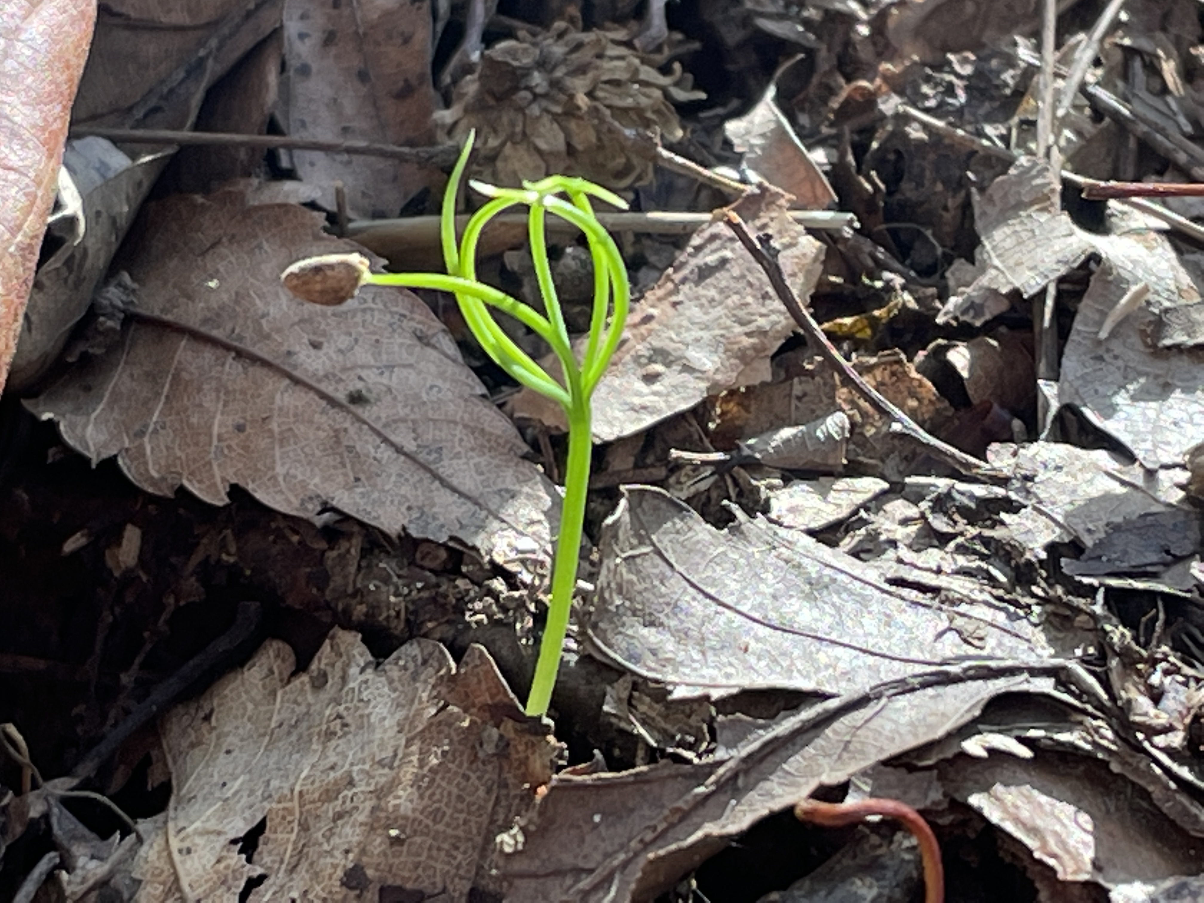수원 팔달산에 봄이 되어 소나무씨앗이 발아하여 새싹을 틔웠어요. 아주 귀여운 아기 손 같아요.