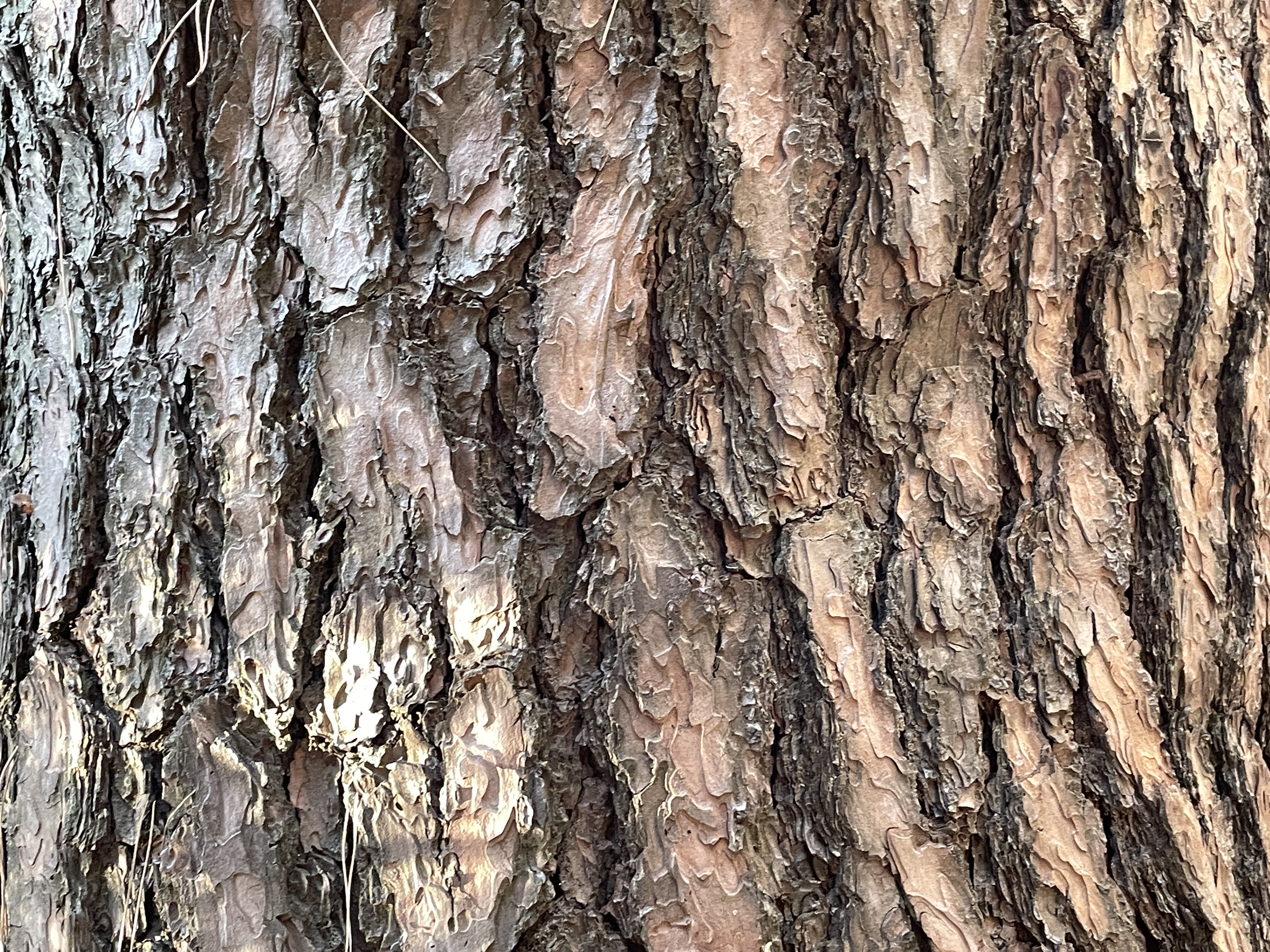 소나무껍질은 붉은색을 띈짙은 갈색입니다. 소나무껍질은 소똥이 겹쳐진 것 같다는 이야기도 있어요.