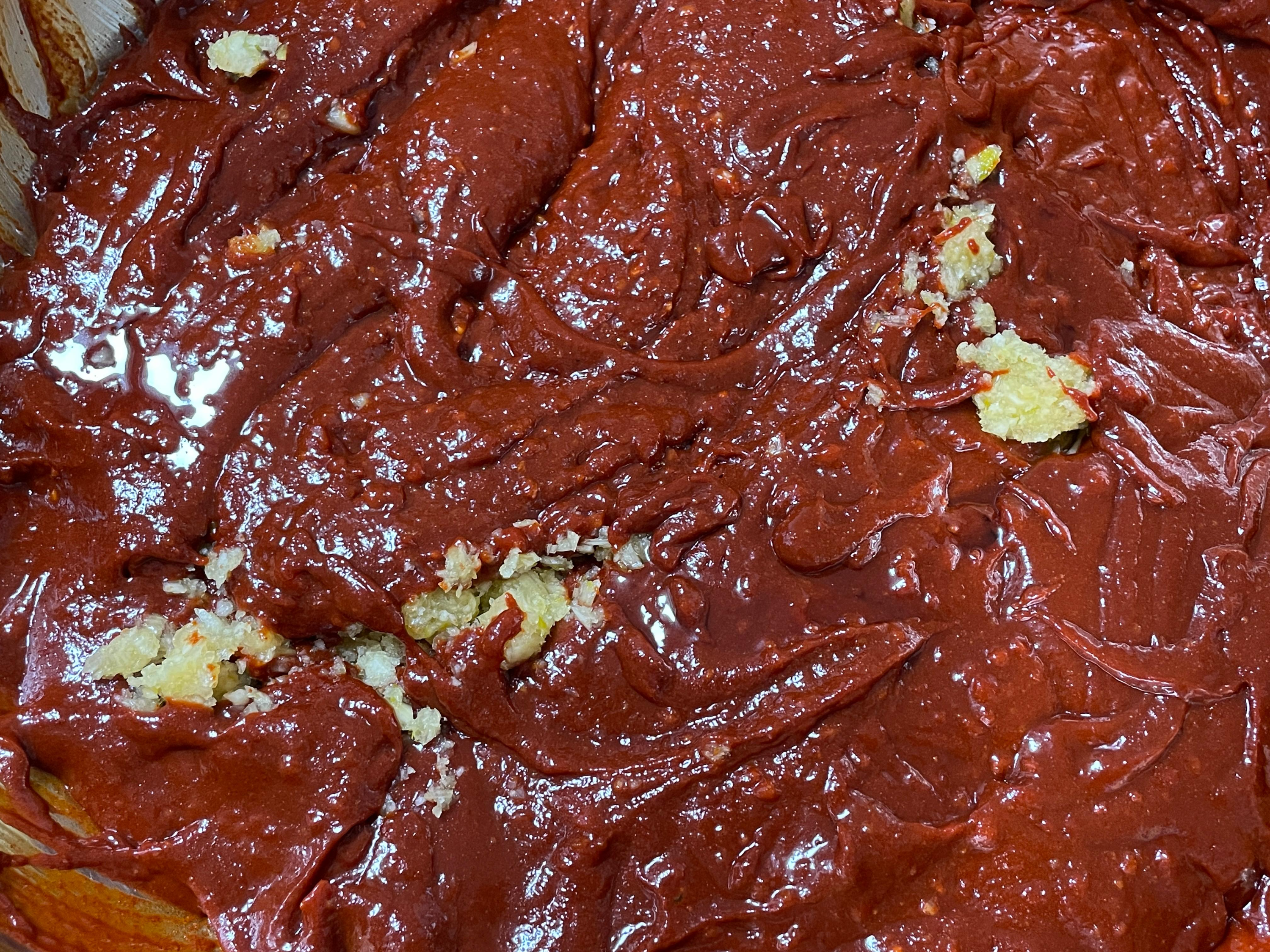 ● 찹쌀고추장에 다진 마늘을 넣고 잘 버무려주면 마늘고추장 완성입니다.