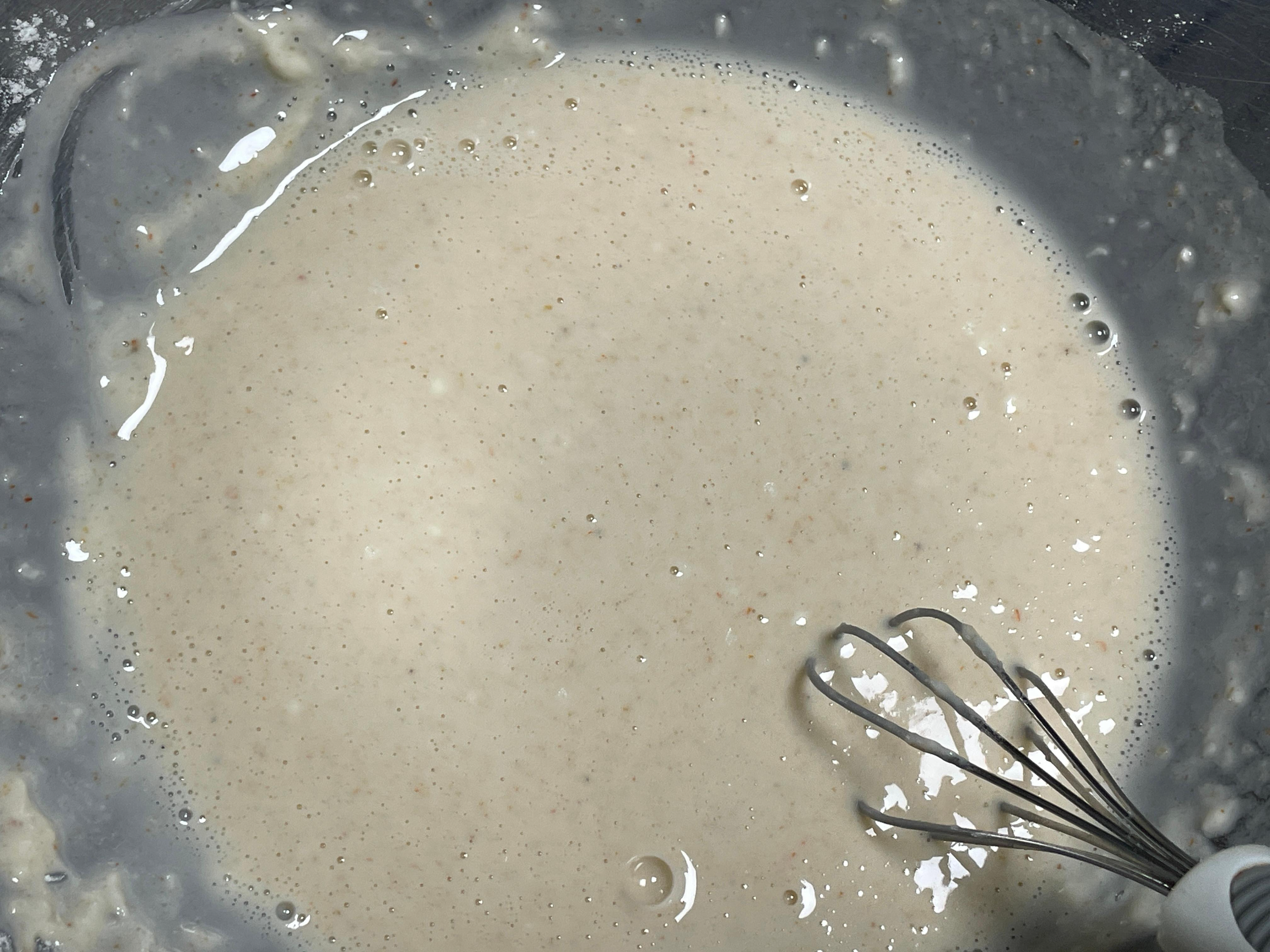 3. 넓은 그릇에 부침가루와 새우가루 그리고 물을 넣고 덩어리가 지지 않고 주르르 흐를 정도의 농도로 잘 저어줍니다.
