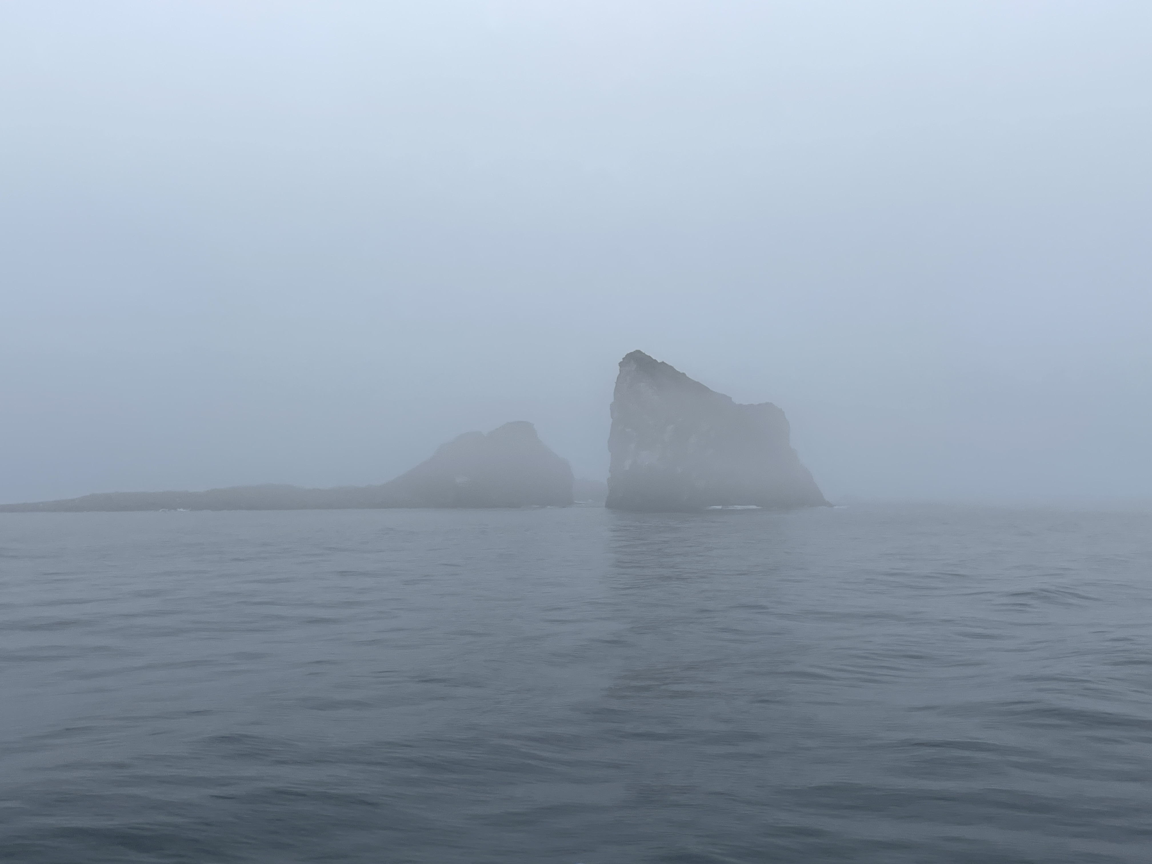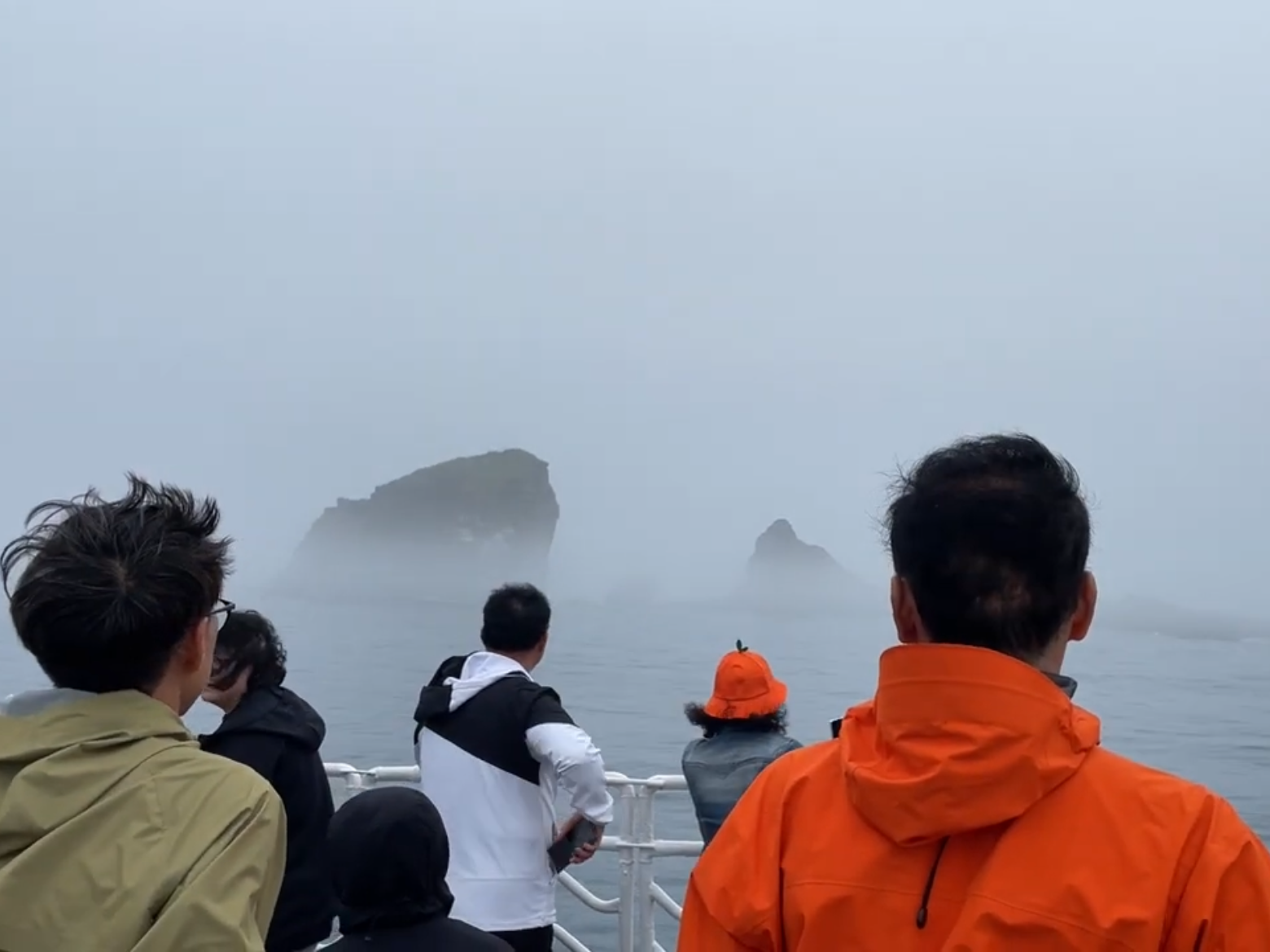 배안에서 스피커로 각 섬에 대한 이야기를 해주는데 해무에 가렸다 다시 보이는 모습이 신비롭기 그지없다. 배가 돌면서 각도를 달리 볼 수 있는데 만조 때인지 형제섬만 보였다.