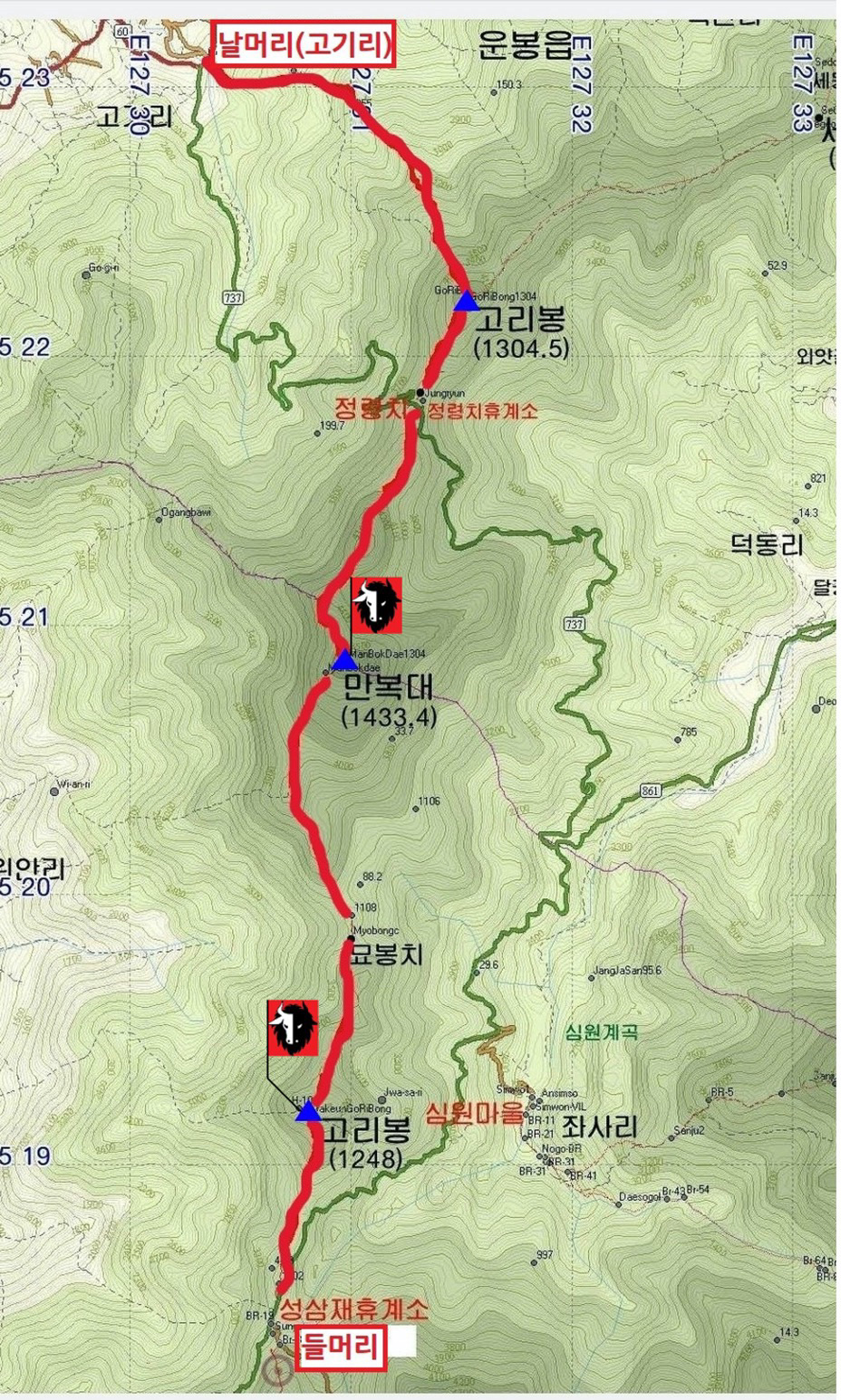 산행코스: 삼성재~ 작은 고리봉(1,248)~ 묘봉치~