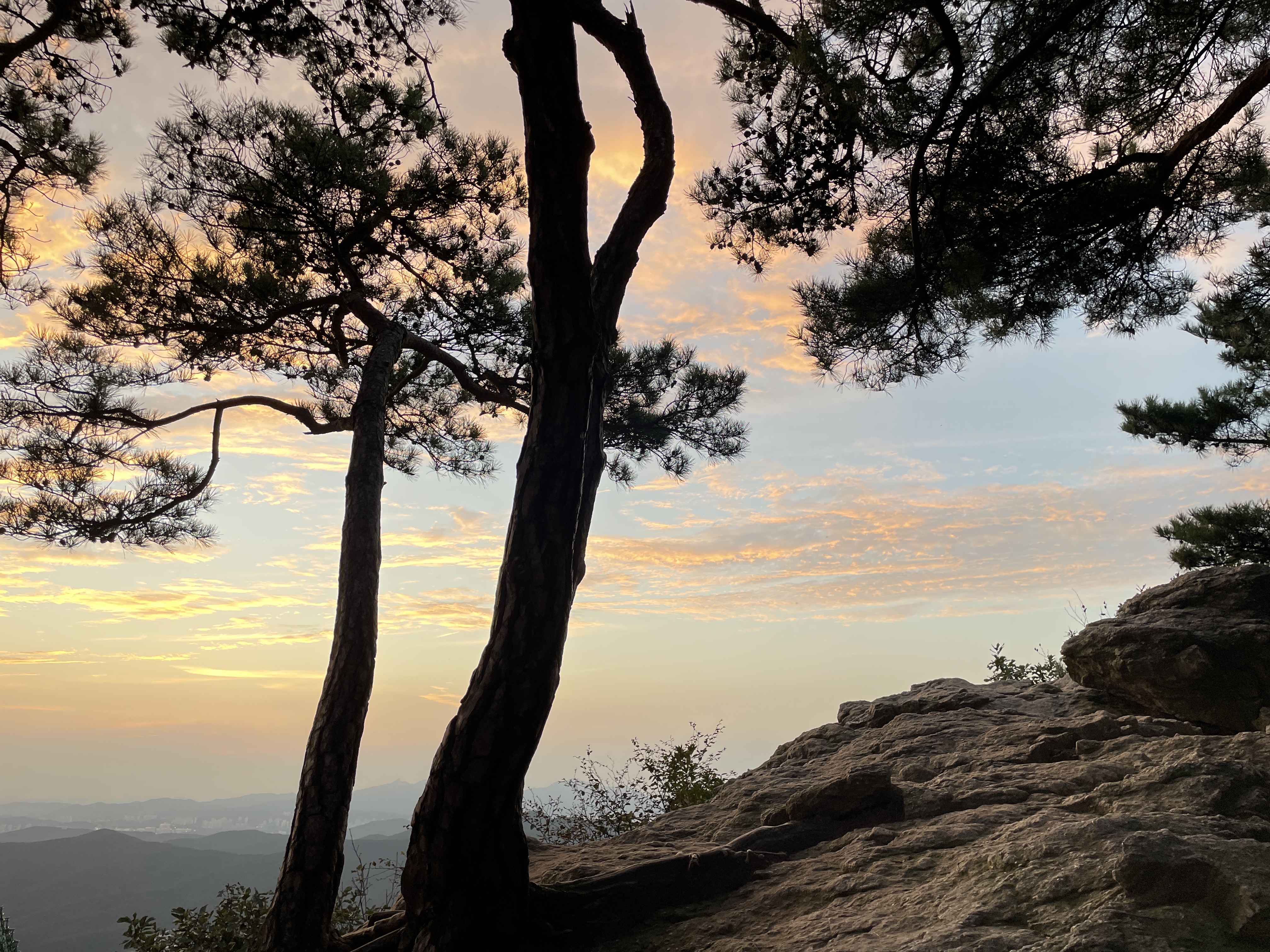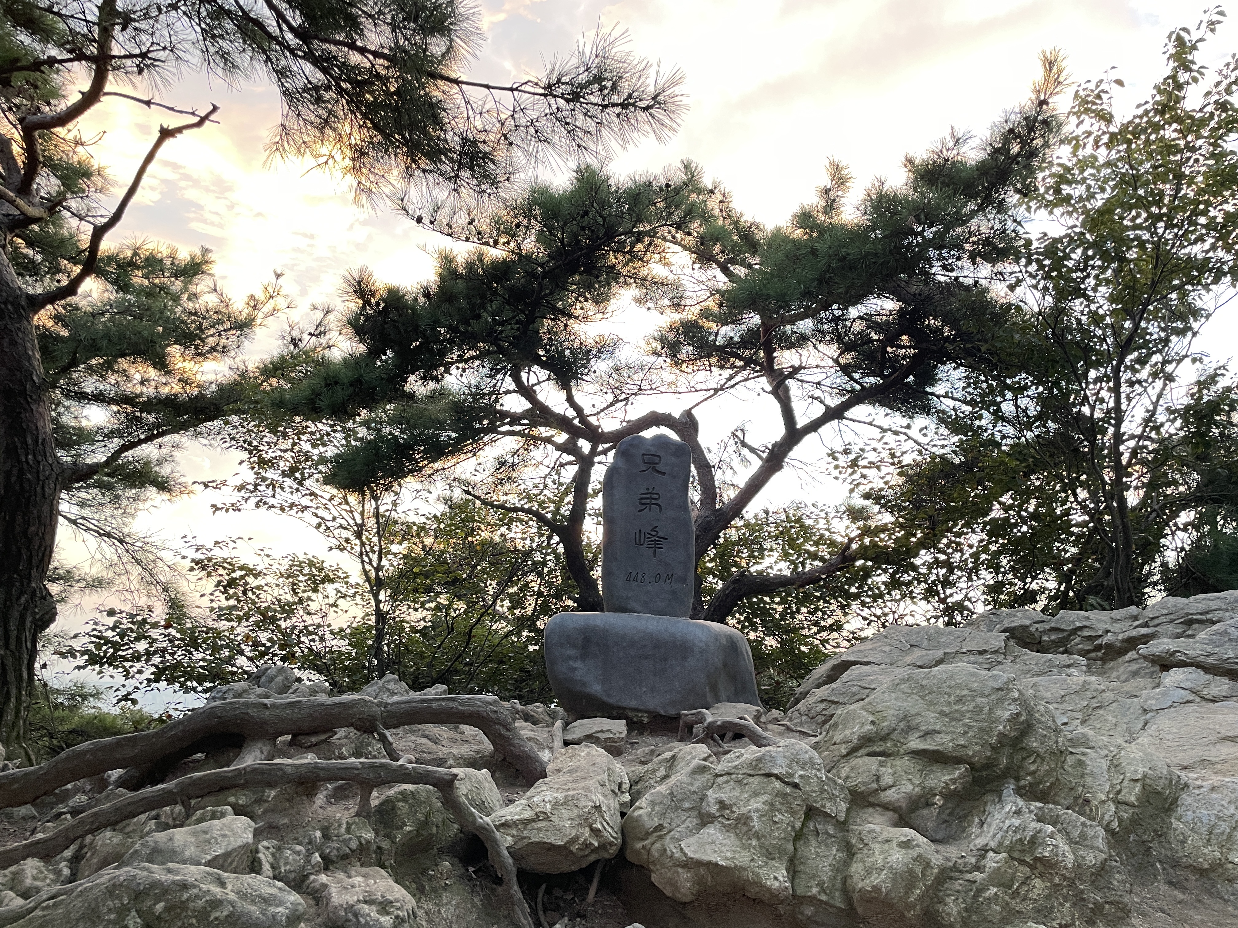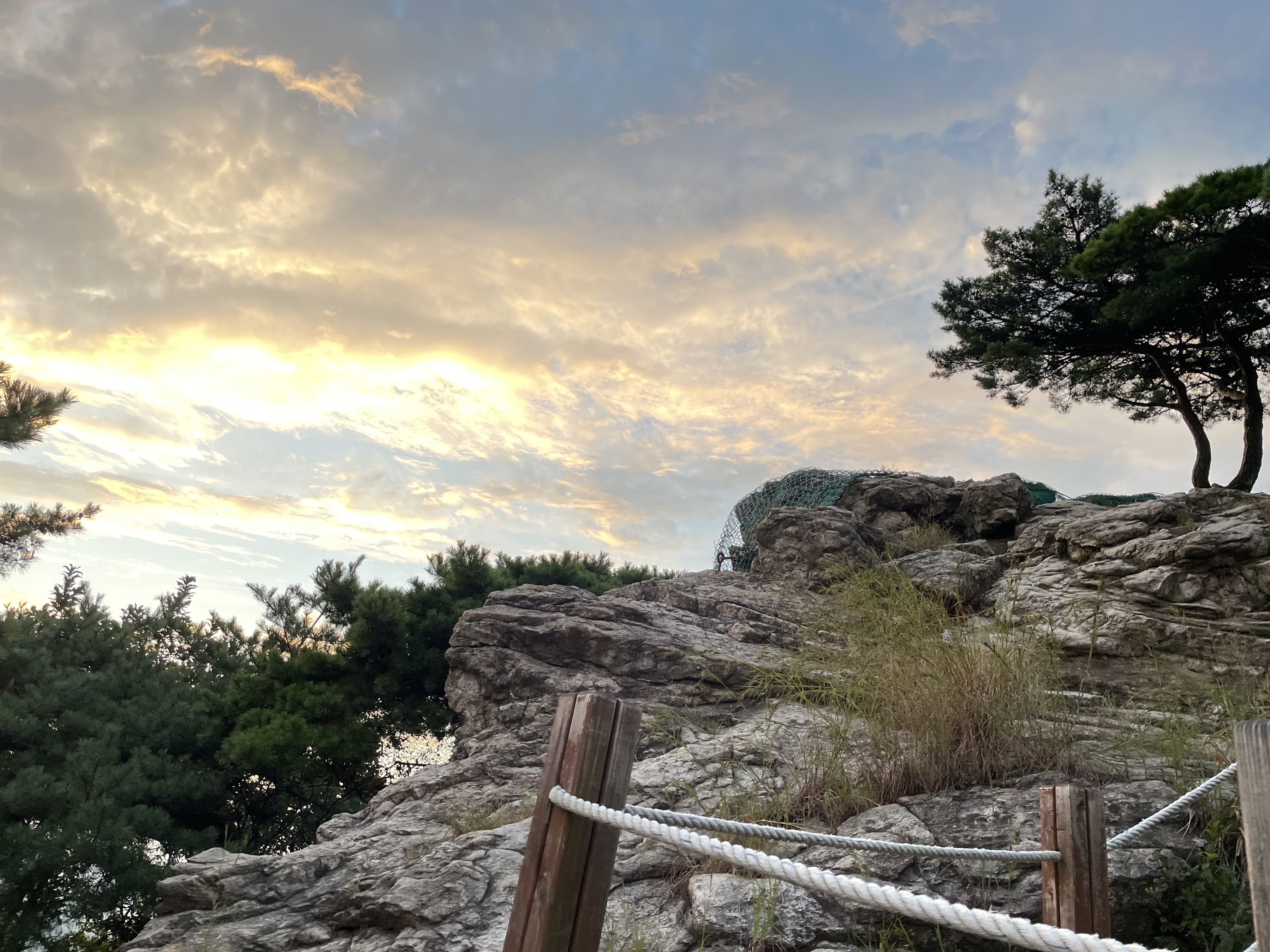 하늘에 구름이 있어서 해는 보이지않고 구름이 약간 붉게 물들었는데 정상석을 찍을 때 까지 사람이 아무도 없어서 좀 으시시했어요.