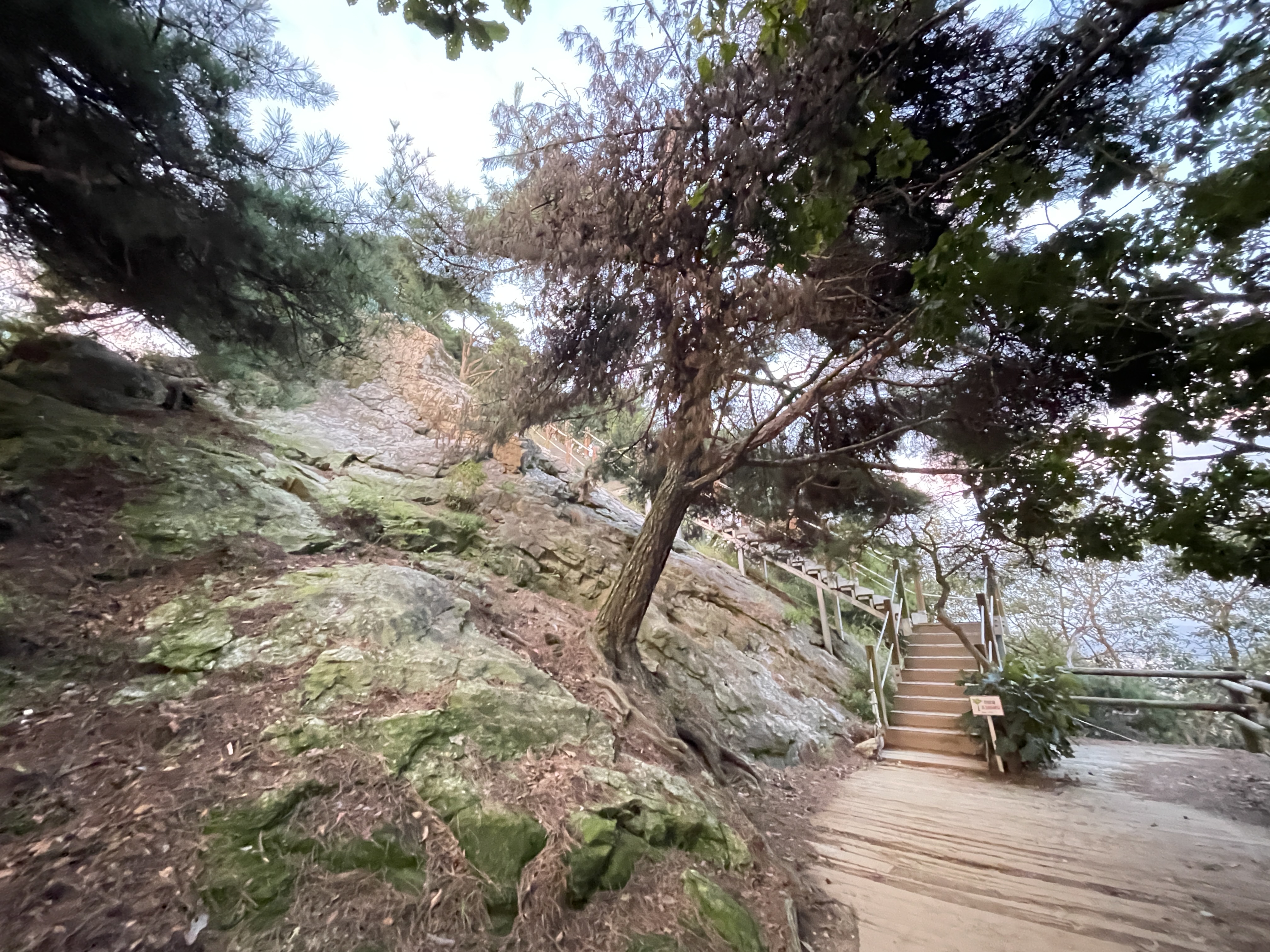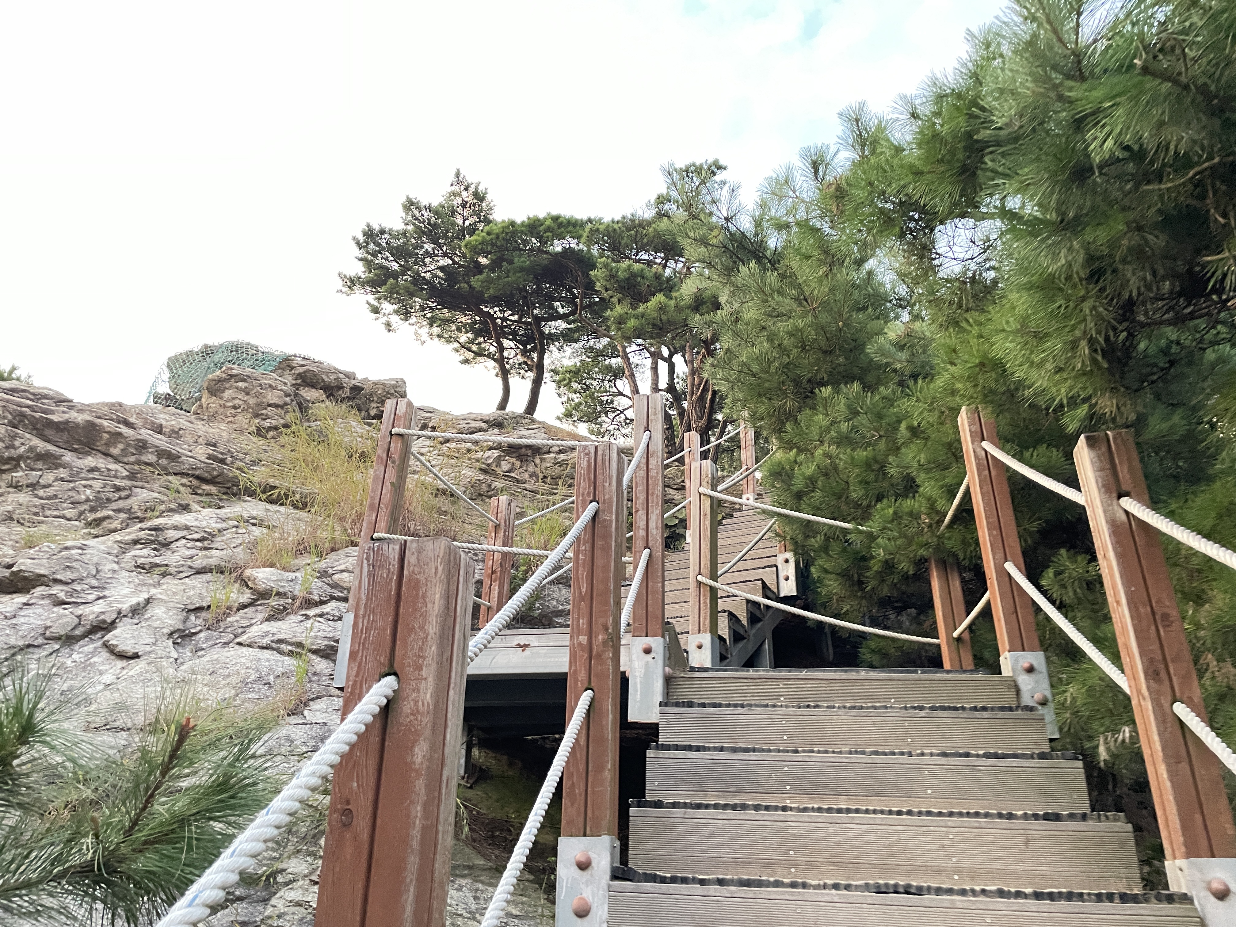 계단에서 풍경이 보이는데 계단올라갈때 조심해야 해요. 왜냐하면 주변이 바위로 되어있는 낭떠러지 입니다.