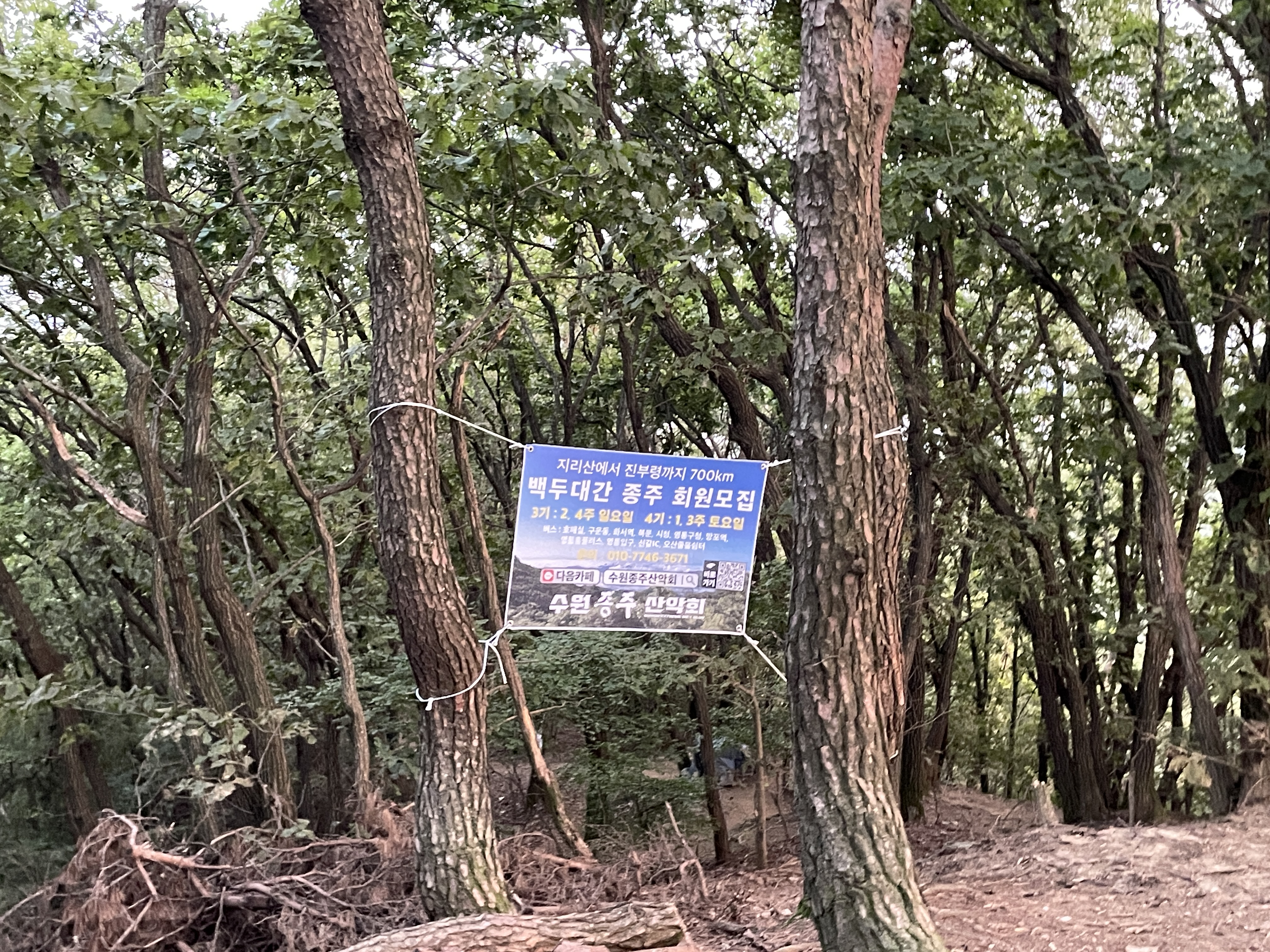 제가 백두대간하는 수원종주산악회 현수막이네요.