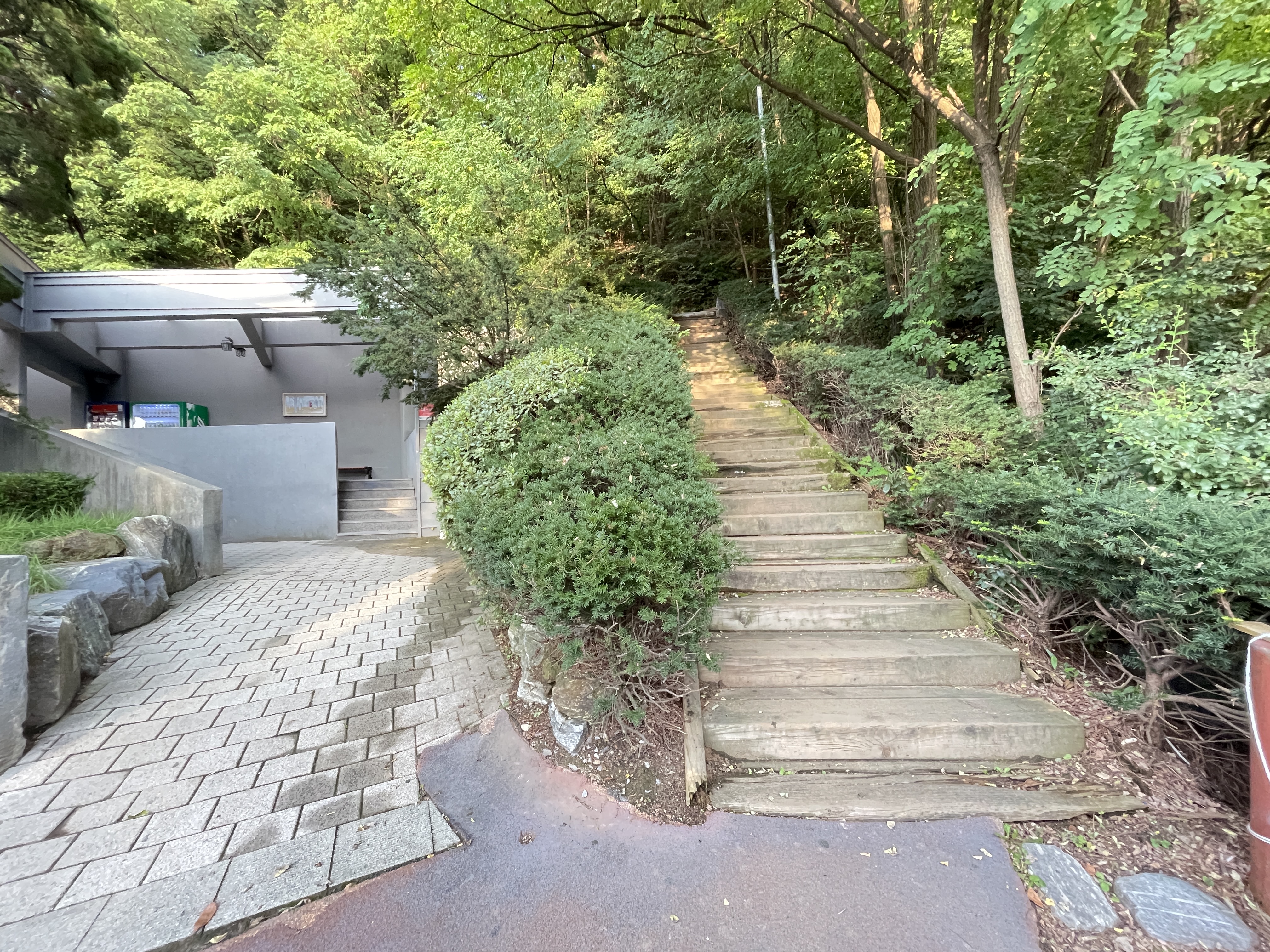 계단을 다 올라가면 왼쪽으로 가는 길과 오른쪽으로 가는 길이 있는데 오른쪽길로 올라가야 합니다.