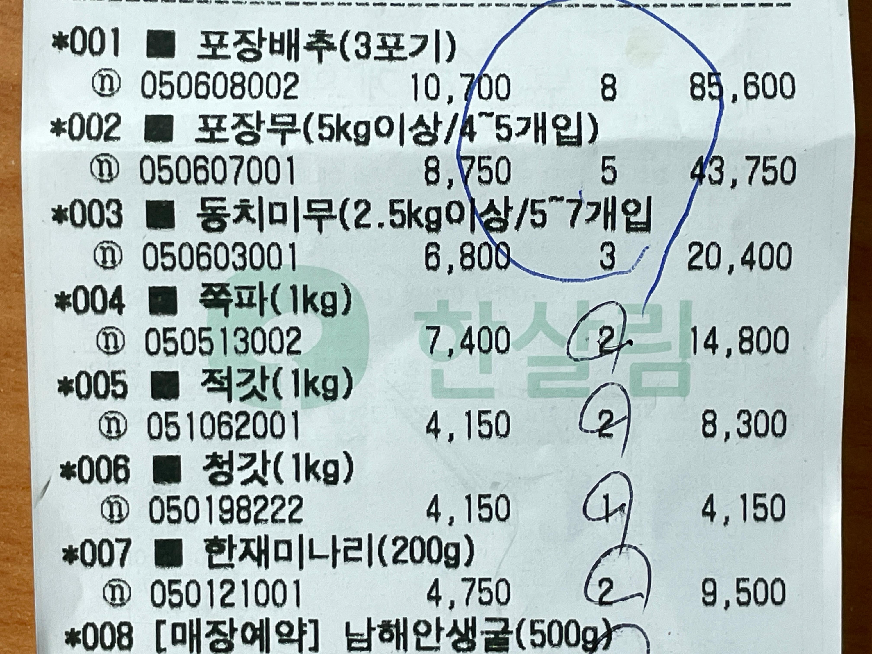그리고 올해 김장배추는 제가 기간을 못 맞춰서 제가 다니는 매장이 아닌 한참 가야 하는 매장에 주문을 했기 때문에 귀찮아서 안 받겠다고 하고