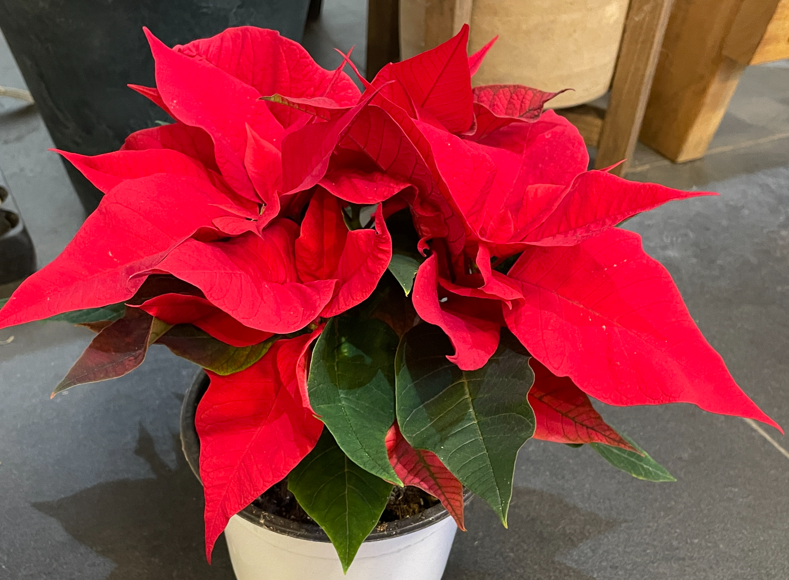 포인세티아는 구입 직후 바로 분갈이할 필요는 없어요. 화분이 너무 작거나 물 빠짐이 좋지 않을 때, 혹은 봄철(3~4월)에 새 성장이 시작될 때 분갈이를 해주세요.
