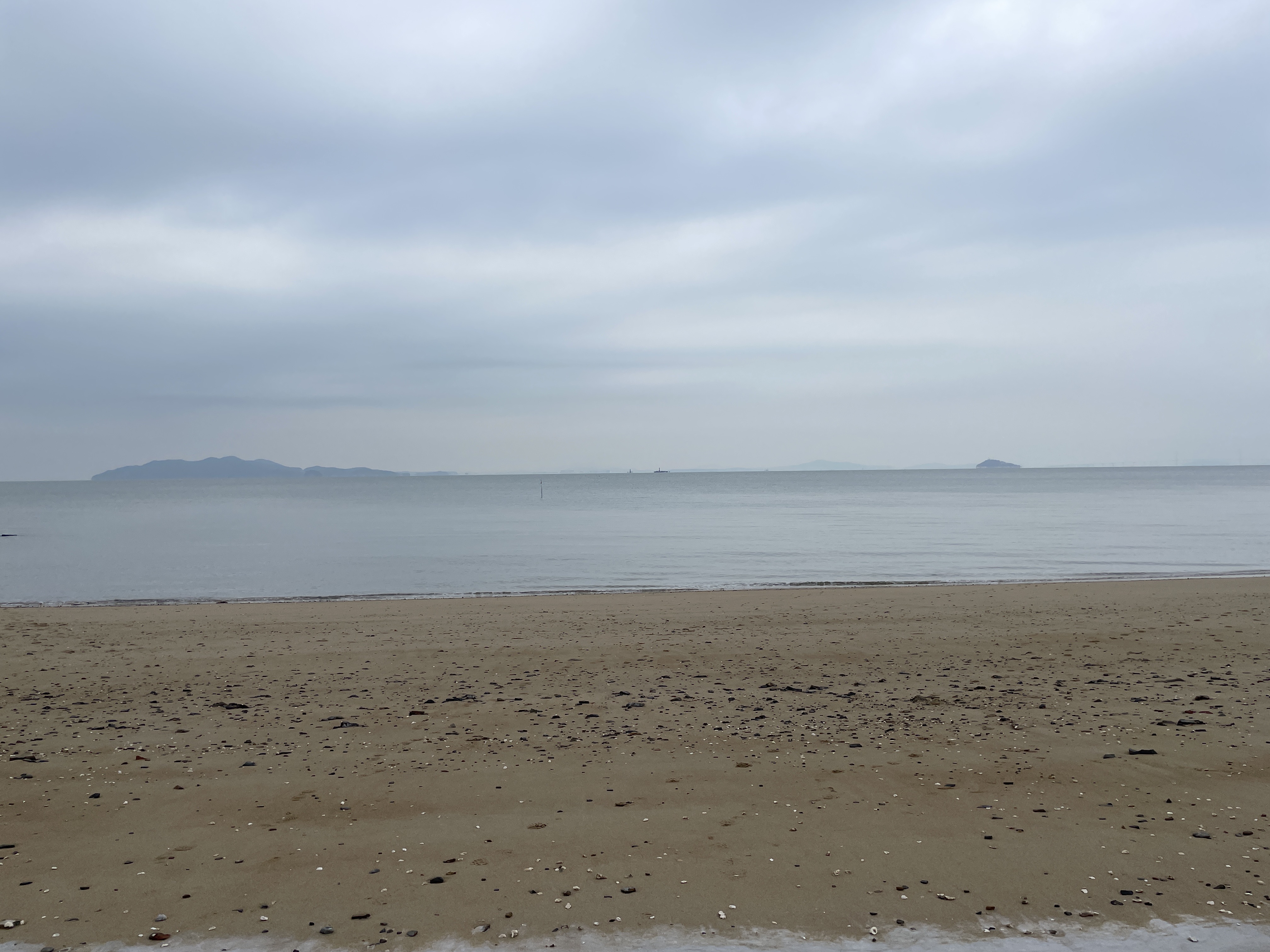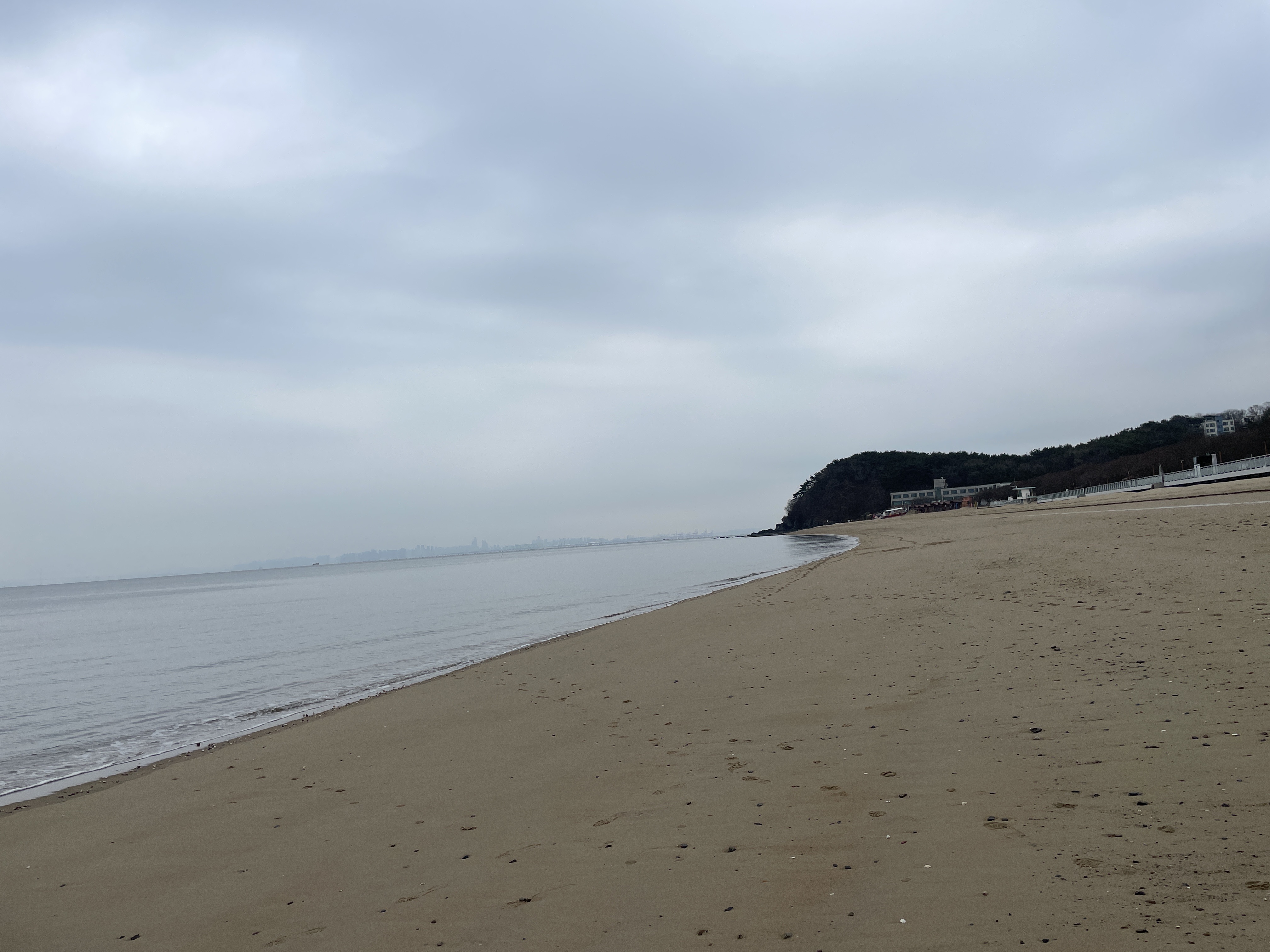 오늘따라 회색과 푸른빛이 섞인 바다는