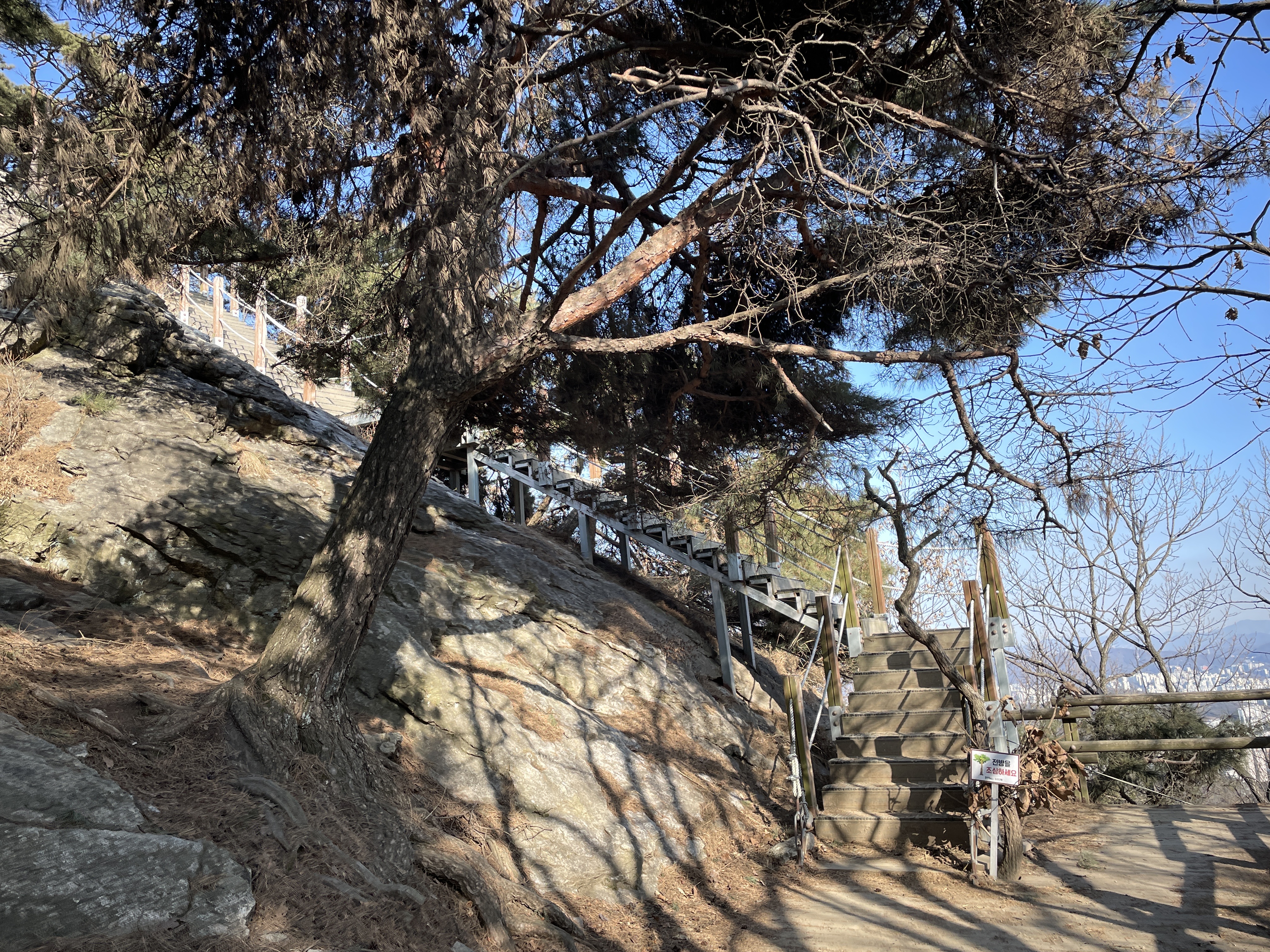 중간중간 숨을 고르며 뒤를 돌아보니 겨울 특유의 맑은 공기가 시야를 더욱 또렷하게 만들어 준다. 복잡했던 생각들도 한 걸음씩 가벼워지는 기분이다.
