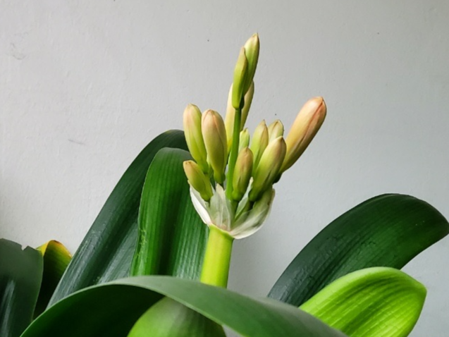 이때 군자란이 영양과 물이 부족하면 꽃대가 올라오다 올라오지 못하고 성장을 멈춥니다.