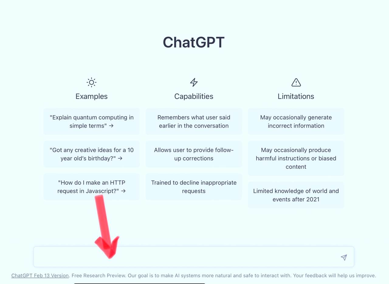 3. 화살표 창에 쳇 GPT에게 원하는 질문을 적어 보냅니다.