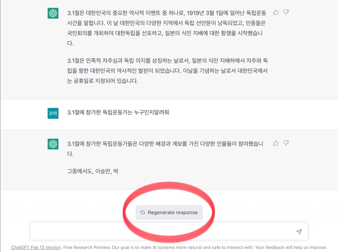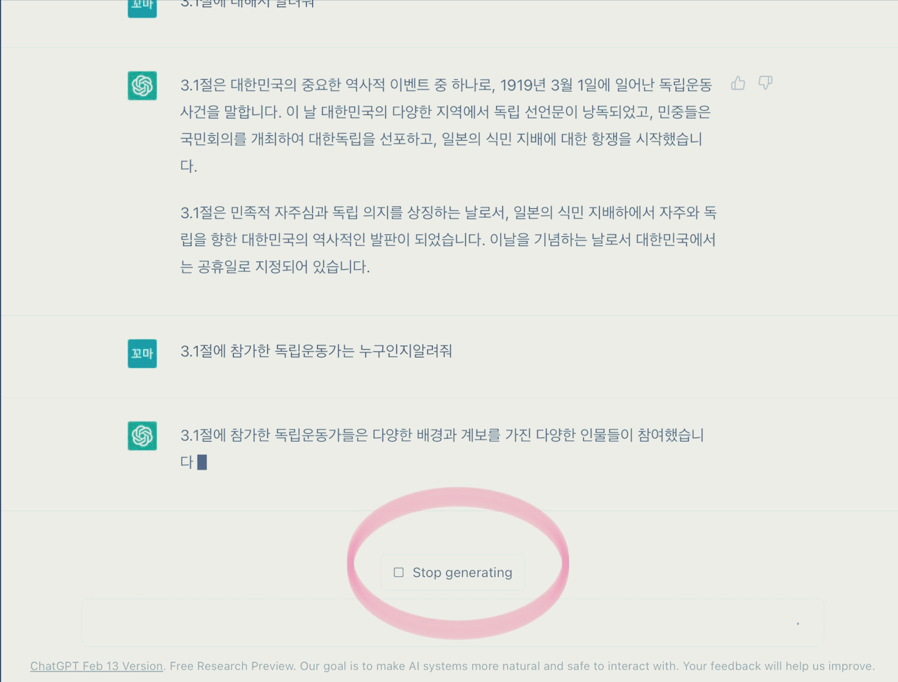 6. 쳇 GPT를 사용하다 Stop generating 클릭한 상태에서 다시