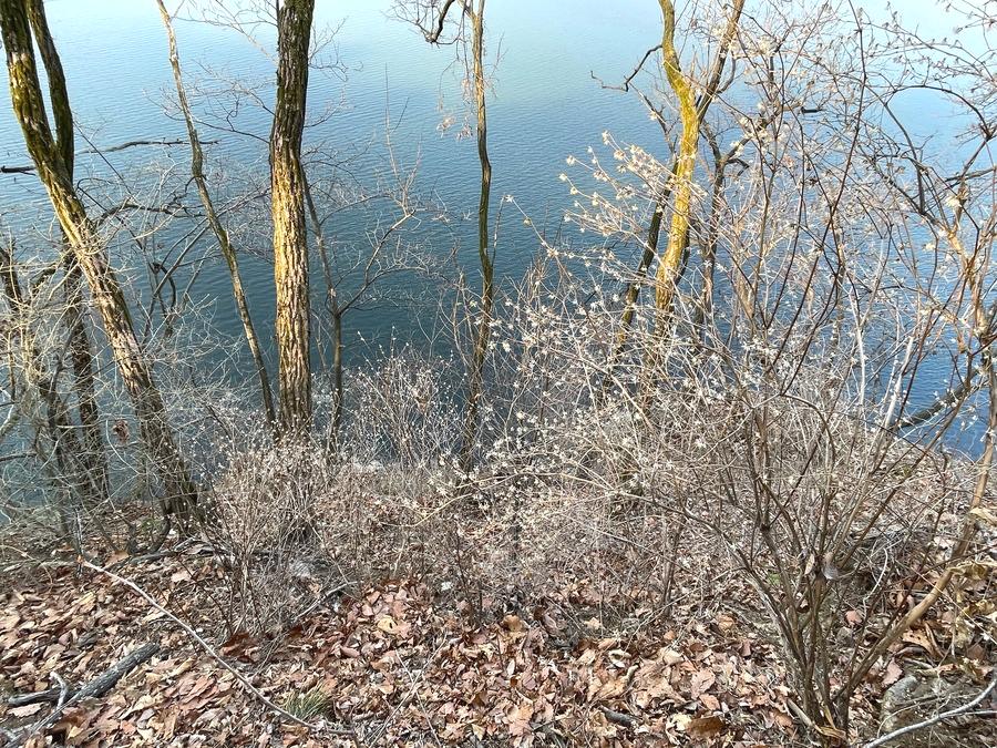 산 쪽으로 난 수변도로를 걷다가 아주 귀한 나무를 발견했습니다. 눈이 내린 것 같은 저것은 무엇일까를 생각하면서 자세히 보았더니'올괴불나무'가 군락을 지어 꽃을 활짝 피우고 있었습니다. 광교저수지의 푸른물색과 하얀 꽃의 어우러짐이 너무 예뻤어요.