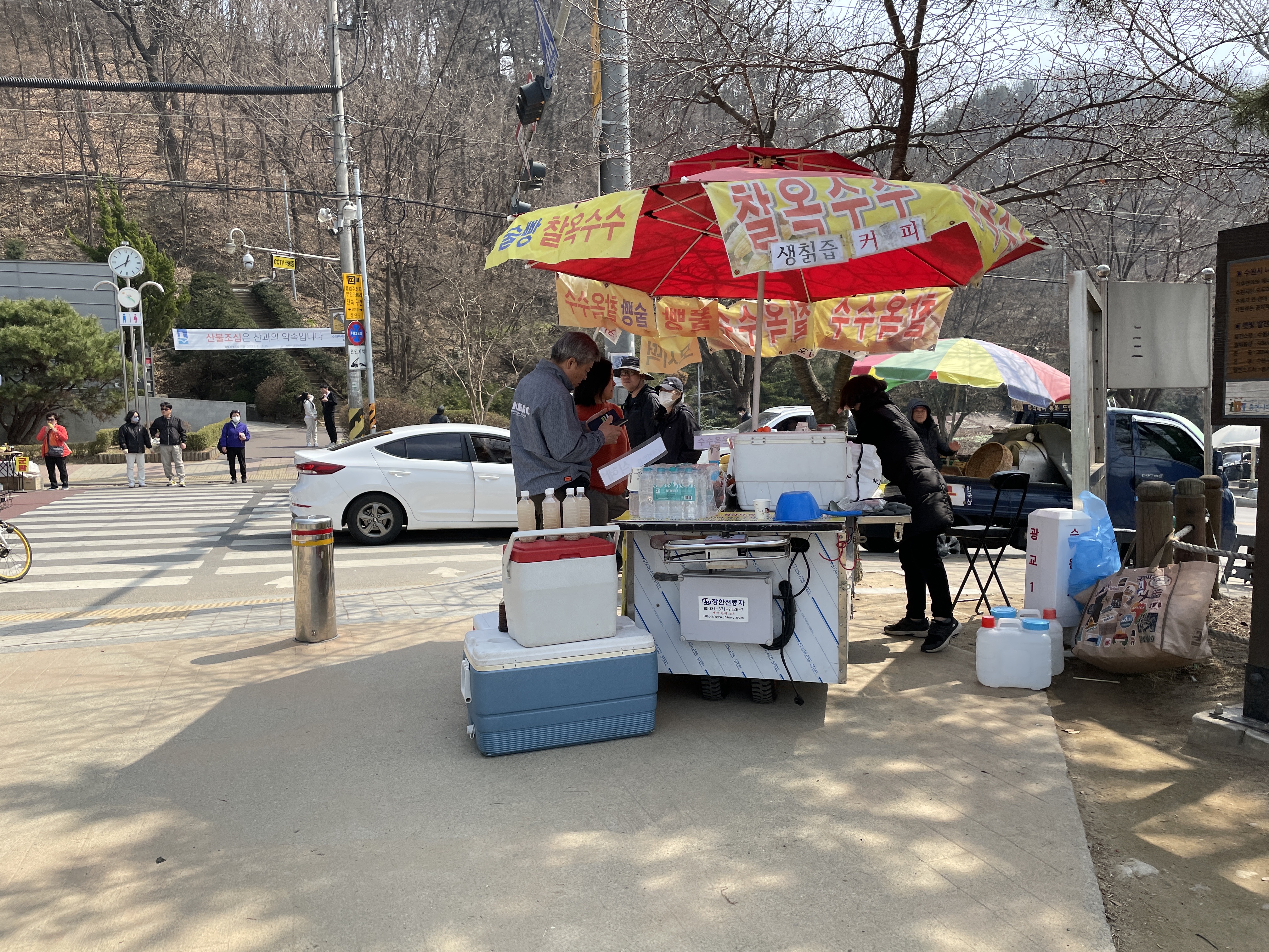 문안골 버스정류장앞쪽에 양쪽길로 오가는 곳에 여러 가지 물건을 파는 분들이 있습니다.